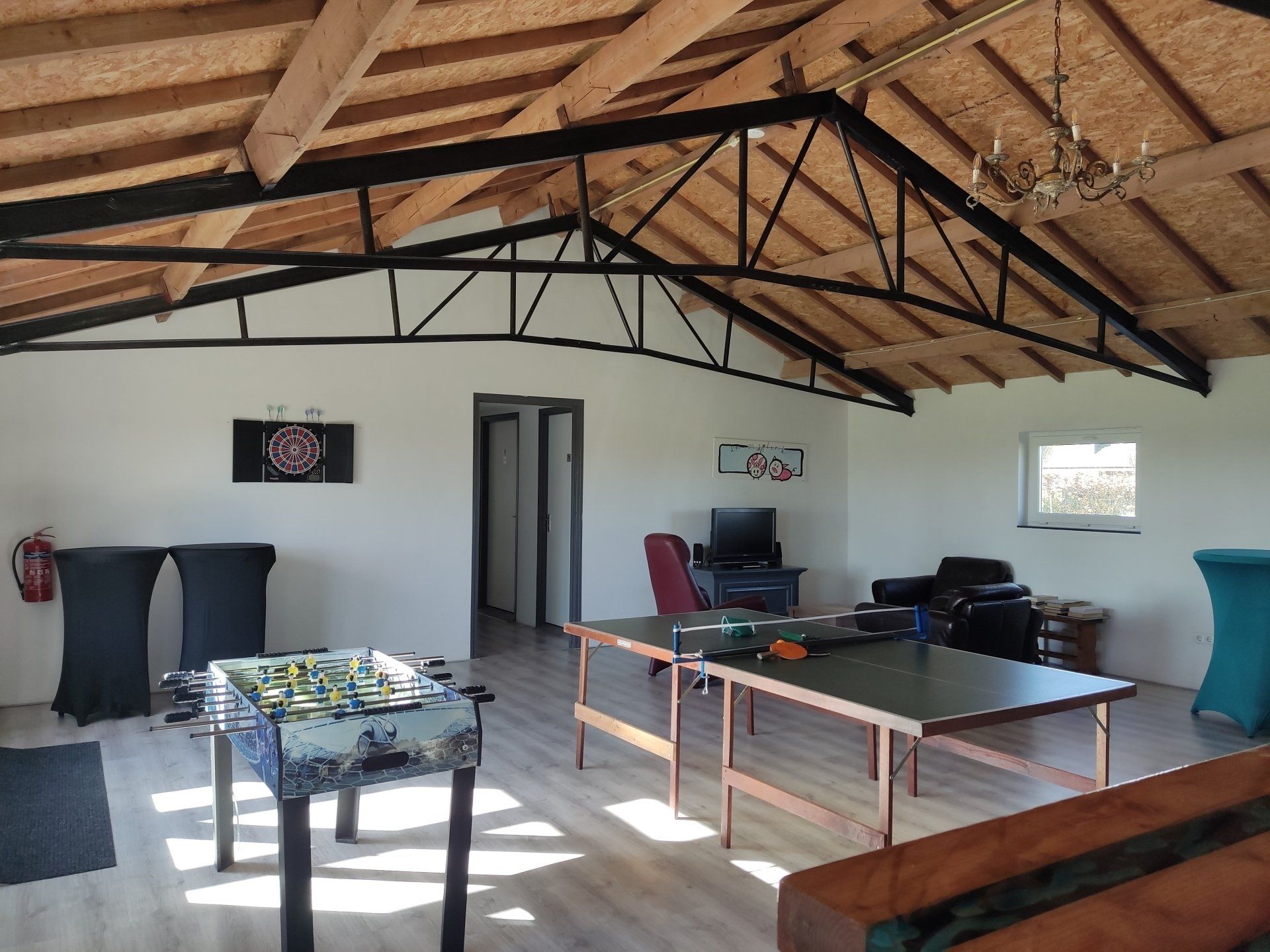 Next to the dining room is the large living room with a sofa, chairs and a television with Chromecast. Via the free WiFi, guests will experience the same comforts as at home. There are also some games available, including a table football and ping pong table.