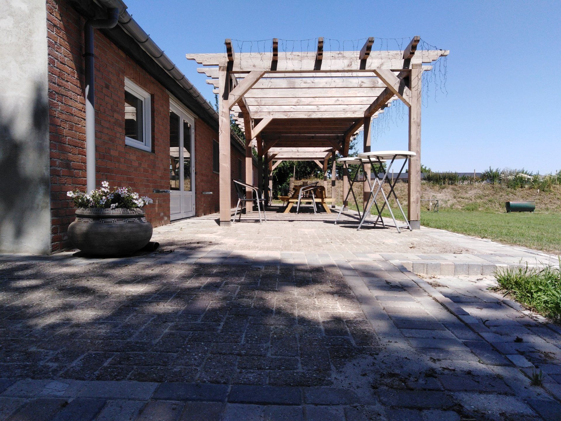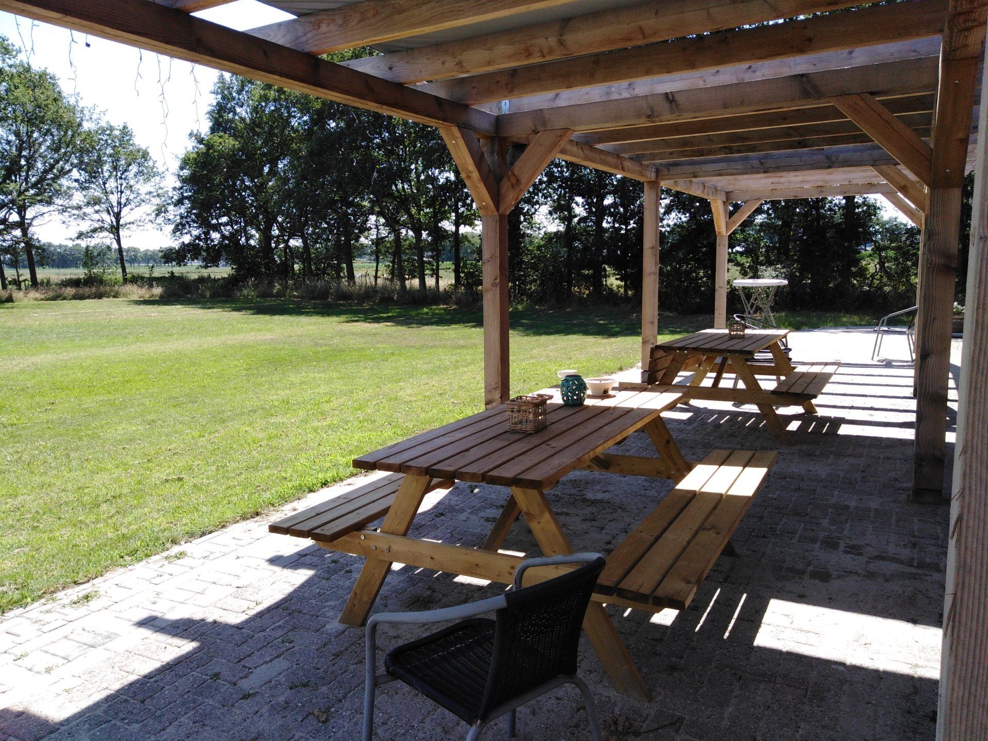 Under the canopy with shade cloth are 2 picnic tables and a few standing tables. The shade cloth offers enough protection from the sun. In addition, there is also a complete large gas grill ready for use. The accommodation is standard equipped with clean bed linen, soap, toilet paper, toilet towels, dishcloths, dishwasher blocks, garbage bags and the like.